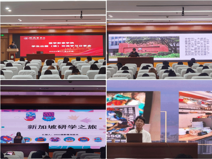会上,来自2020级医学影像学专业刁杰虎、2022级医学影像学专业刘若天、2022级生物医学工程专业章皓杰等不同年级专业的同学,分别向大家分享了参加学校出国(境)交流学习项目的体验和收获。他们分别前往新加坡南洋理工大学、香港大学、香港浸会大学,从所学课程、语言交流、文化差异以及社交生活等方面,用图片和视频的方式展示了所学所见所闻。三位同学表示,自己对新加坡和香港等国家和地区的大学教学模式感受深刻,浓厚的校园学术氛围有利于培养员工科研思维和创新能力;当地员工主动学习和思考问题的能力,值得大家学习和借鉴;熟练灵活运用英语等外语能力,是国际交流学习的必备条件。同时,他们都对各项目的行程安排、课程内容、后勤保障等多方面给予高度评价,对于学校的资助投入、父母及老师们的关爱表示由衷感谢,希望学校将来能够举办更多的国(境)外学习交流项目。