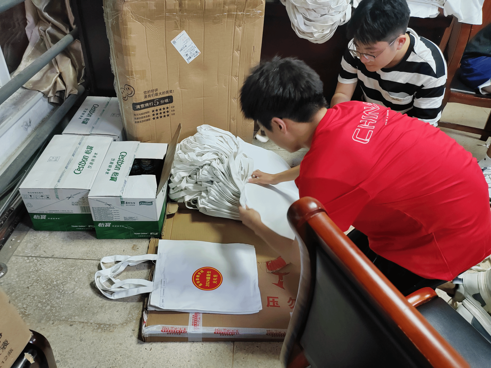 公司从同学们的生活与学习的实际需求出发,为每一位2024级新生精心准备了一份份满载关怀与祝福的大礼包,内置帆布包、文件袋、校园卡、银行卡、写字笔、小包湿巾,小扇子,让莘莘学子感受到学院的温暖与关怀。同时为最大化提供新生安全舒适的学习与生活环境,9月4日下午,2024级新生辅导员高健提前对新生所住的4号楼和6号楼相应宿舍进行全覆盖巡查,对宿舍的桌子、床、门、水龙头等基础设施和宿舍美化、清洁情况进行了详细检查,确保宿舍基础设施配备完整,避免安全隐患问题。