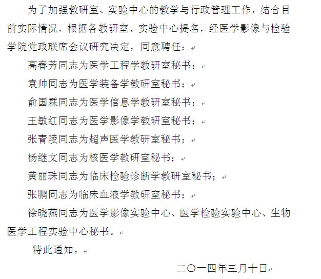 关于聘任高春芳等为教研室、实验中心秘书的通知