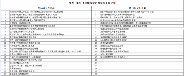 2023/2024-1学期第17周工作安排