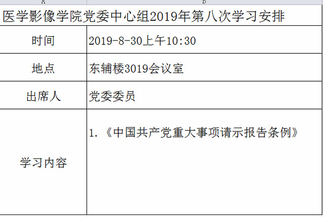 医学影像公司党委2019年第八次学习安排