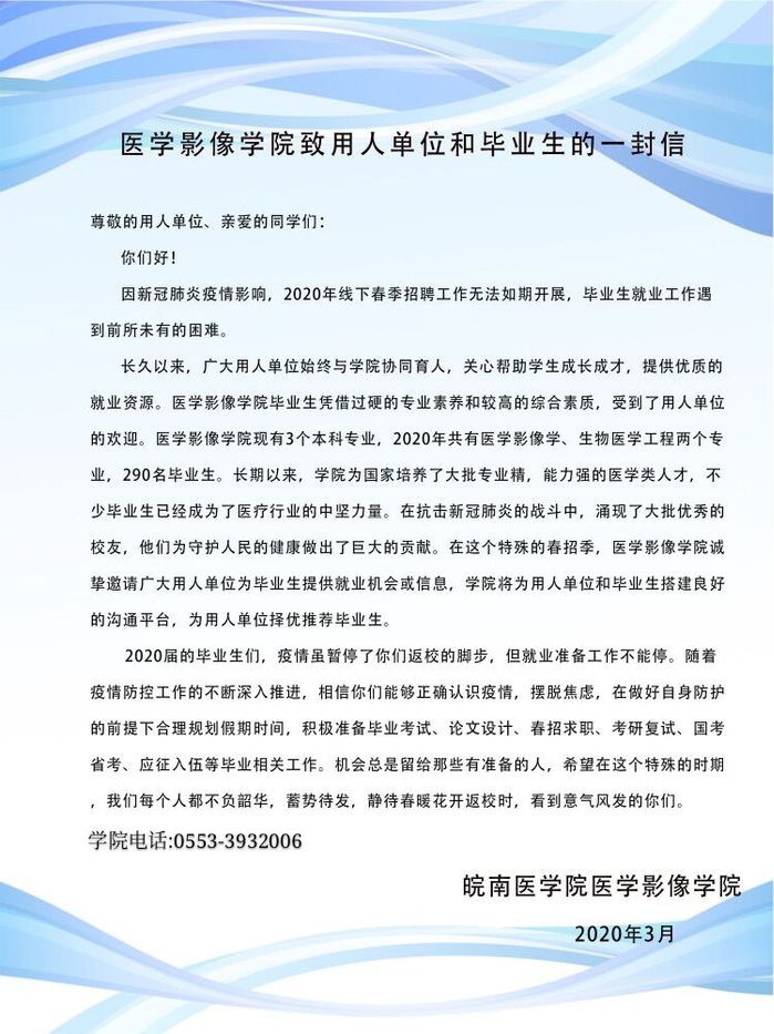 15vip太阳集团官网致用人单位和毕业生的一封信