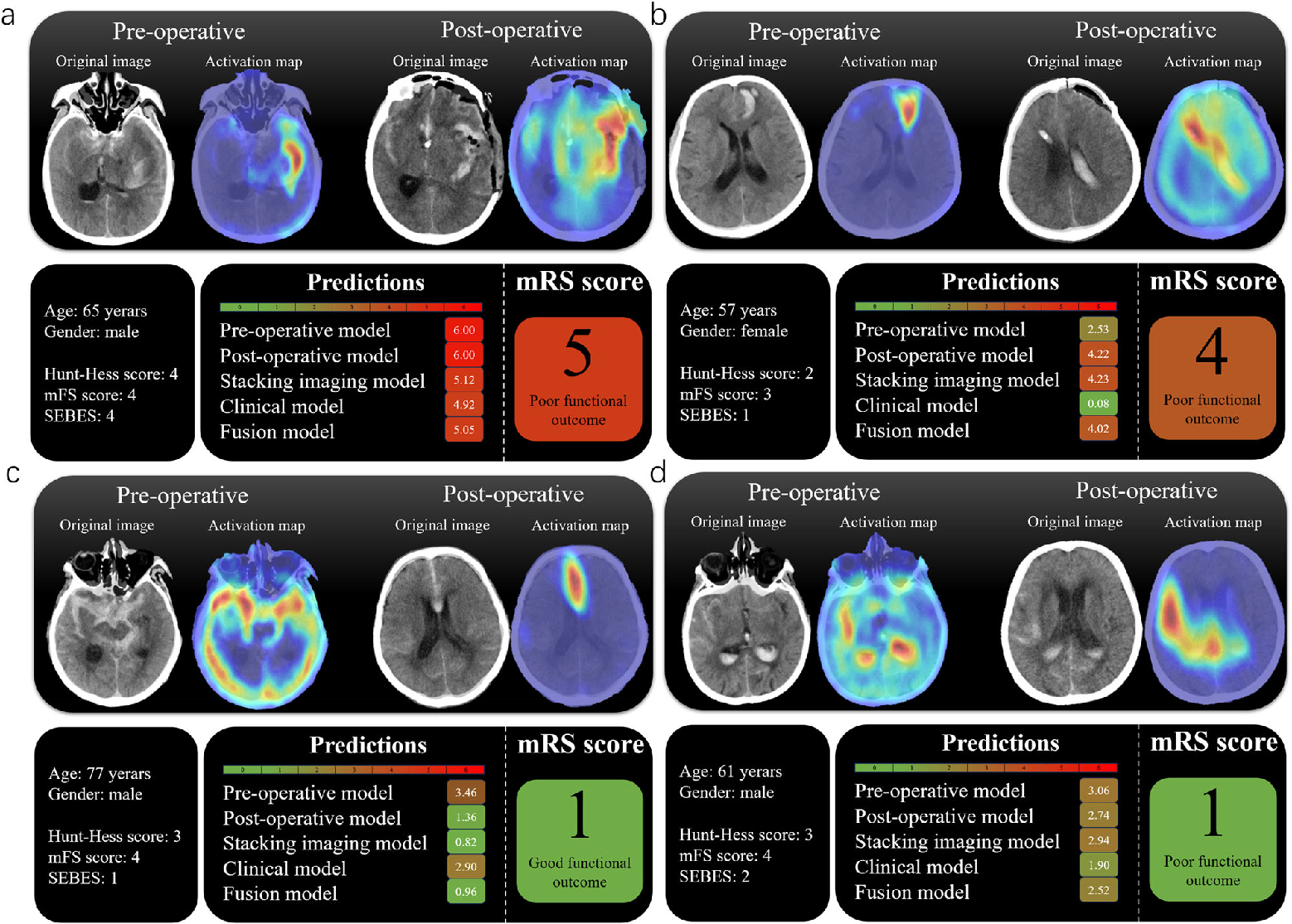 该研究创新性地采用深度学习技术,成功实现了对动脉瘤性蛛网膜下腔出血(aSAH)患者预后的精准预测。研究基于患者入院3天内的CT平扫图像进行分析,能够准确预测患者发病3个月后的功能结局,为临床早期干预和个性化治疗方案的制定提供了强有力的决策支持,具有显著的临床应用潜力。