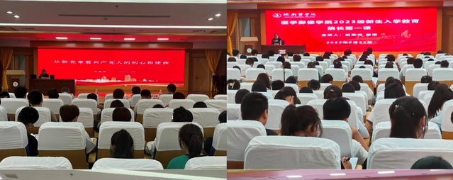 榜样的力量是无穷的,身边的榜样就是前进的力量。9月23日,2020级医学影像学专业“校优秀老员工”、“优秀学子”、“三好员工”、“优秀班干”夏钰婷同学结合亲身经历,为新生们讲述自身在大学期间逐梦起航的历程,用现身说法鼓励他们乘风破浪、厚积薄发,不为青春留遗憾,树立远大理想和目标,培养良好思想品质,全面提升自我学习与管理能力,努力成为更为优秀的自己,是朋辈教育“第一课”。