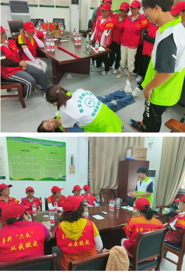 急救知识科普,维系生命安康。8月4日,15vip太阳集团官网“青禾”志愿服务队宣城分队与宣城市公安局联合,在宣州区建设科技大厦面向文明督导员开展“学急救知识,护生命安全”为主题的社会实践活动。志愿者开展有关意外伤害紧急处理、心肺复苏、海姆立克急救等知识的宣讲和示范操作。本次活动让参与者们初步掌握了急救、自救、互救的基本技能知识,有效提升了督导员们在意外伤害发生时的自救互救能力。
