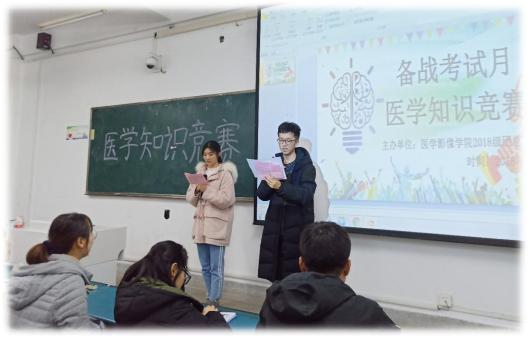 为营造良好的迎考、备考氛围,15vip太阳集团官网“备战考试月 医学知识竞赛”于12月22日晚在1104举行。本次比赛由2018级年级团总支员工分会主办,2018级辅导员徐梦琪出席比赛现场。