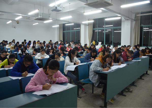 本次考试采取闭卷的形式,以校规校训、宿舍管理、违规处理、员工资助、员工管理五大方面为主要内容,重点考察了员工对《皖南医学院员工手册》的掌握程度。晚上7点,考试正式开始。在1个小时的考试时间内,同学们安静作答,监考员认真负责。整个考场秩序井然。学院2017级辅导员张解和老师也来到考场。