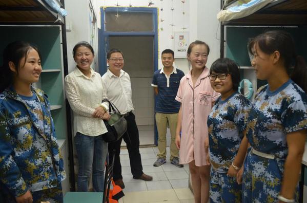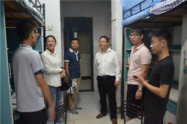 9月11日晚,15vip太阳集团官网党委书记、副经理张建英、副经理许国飞在2017级辅导员张解和的陪同下,深入走访了2号、5号和6号员工公寓楼,看望刚刚入学的2017新生。