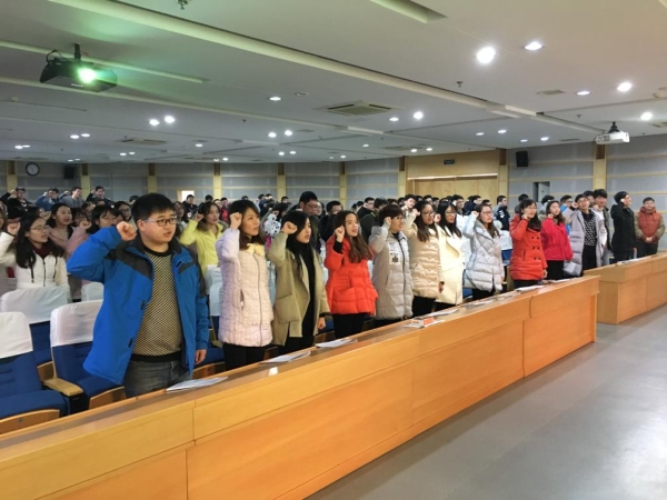 2016年12月16日上午,公司2013级医学影像专业实习生动员大会于图书馆三楼报告厅举行,副经理许国飞出席本次大会,各位带队老师以及2013级医学影像学专业全体实习同学参加。本次大会由2013级辅导员徐梦琪主持。许国飞对此次实习做动员讲话,对实习同学提出了以下几点要求:希望同学们能心到,口到,眼到,耳到,手到脚到;希望同学们能转变思想,明确目的,端正态度,把握机会;希望同学们能注意自身安全,自觉维护学校和实习单位的形象。2013级医学影像学专业员工代表上台发言,代表全体实习生承诺遵守相关规定,认真完成实习任务。全体同学起立,共同进行了医员工誓言宣誓,许下了“为祖国医药卫生事业的发展和人类身心健康奋斗终身”的庄严承诺。