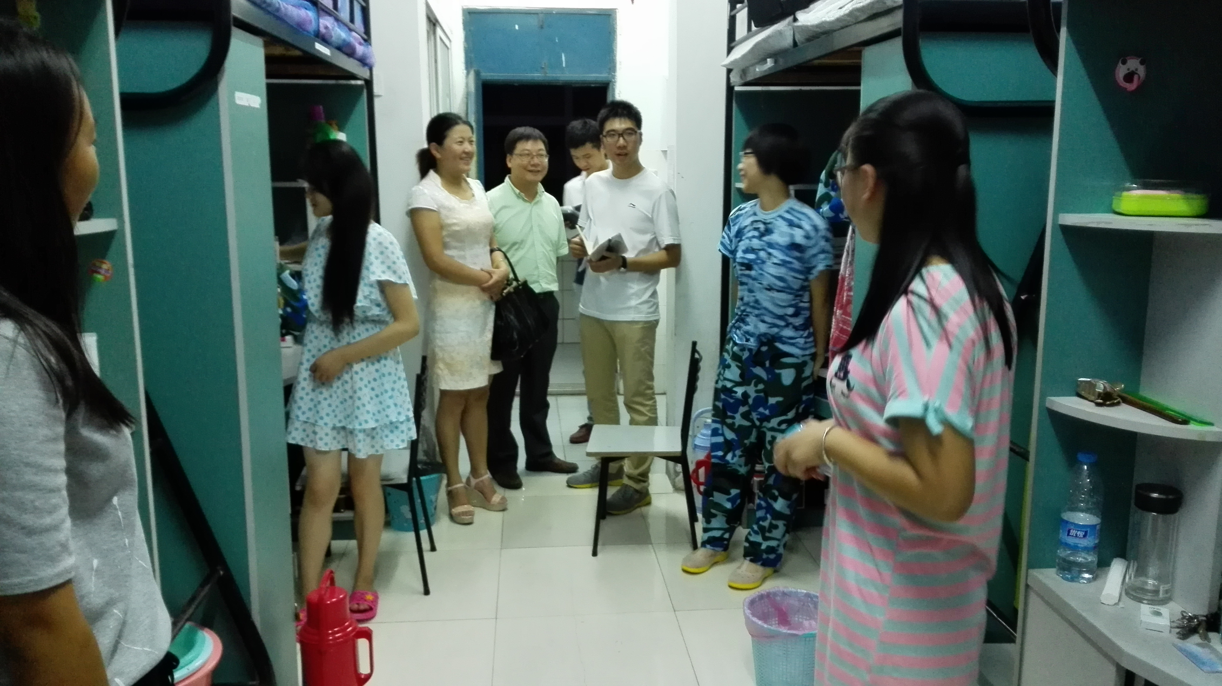 在走访宿舍的过程中,学院领导和老师寝室查看了新生的住宿情况,仔细询问了新生的军训情况以及来到新的学习生活环境的适应情况。领导和老师们鼓励新生要学会独立,学会适应环境,强调宿舍是一个小集体,舍友、同学之间要学会宽容和理解,凡事不要以自我为中心,平时多加强沟通与交流,传递正能量,增强宿舍凝聚力;要求新生们注意安全,不断加强自我保护意识;鼓励同学们努力学习,尽快适应老员工活,实现个人价值。
