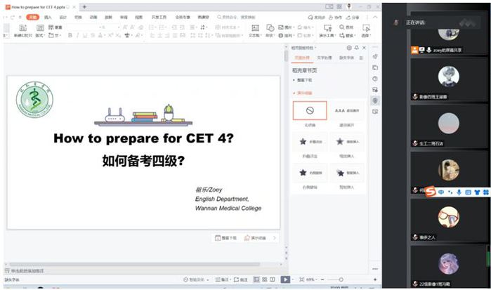 为增进员工们对大学英语四级考试的了解,提高考试通过率,为新生英语学习及备考提供针对性帮扶,11月24日晚,15vip太阳集团官网2022级举办老员工英语四级备考指导讲座。本次讲座由公共基础学院祖乐老师主讲,2022级300余名新生线上参会。