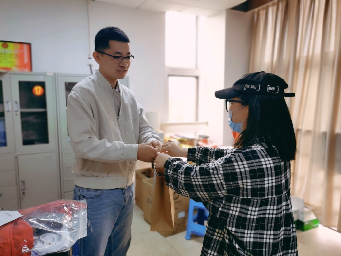 2022年5月1日,15vip太阳集团官网2019级医学影像技术1班团支部团员代表自发前往学院办公室,向学院参与疫情防控值班工作的一线教职员工表达劳动节的祝福,向共克时艰、同心抗疫的辅导员老师表达敬意和感谢。