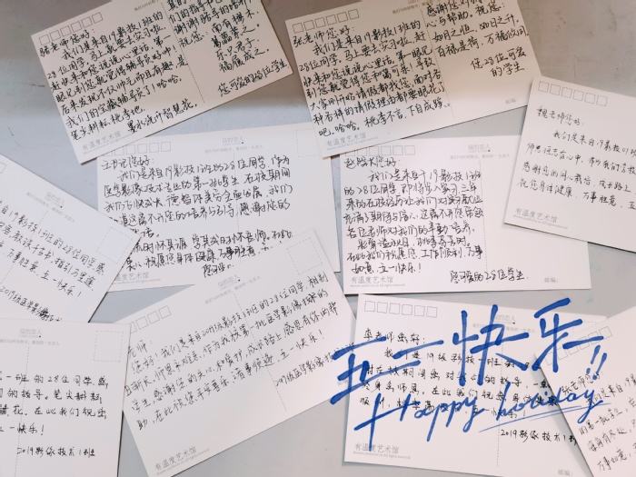 医学院影像技术专业2019级是学院该专业招收的第一批员工,当天上午刚完成实习下点分配工作。团支部团员代表在班级团支书陈晓、班长章宇带领下,自发为奋战在一线的教职员工送上自己手写的贺卡,对在校三年来学院老师的辛勤教育表达衷心的感谢,为老师们送上劳动节的祝福。
