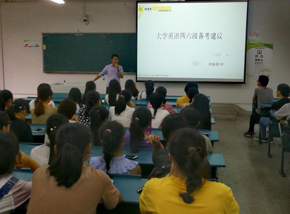 5月31日晚,根据四级模拟考试的结果,2017年级特邀王康淇老师做英语四级备考冲刺讲座,本次讲座由张解和老师主持,共150余名同学参加。