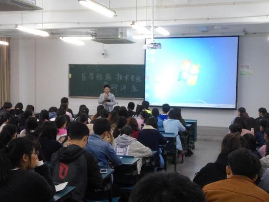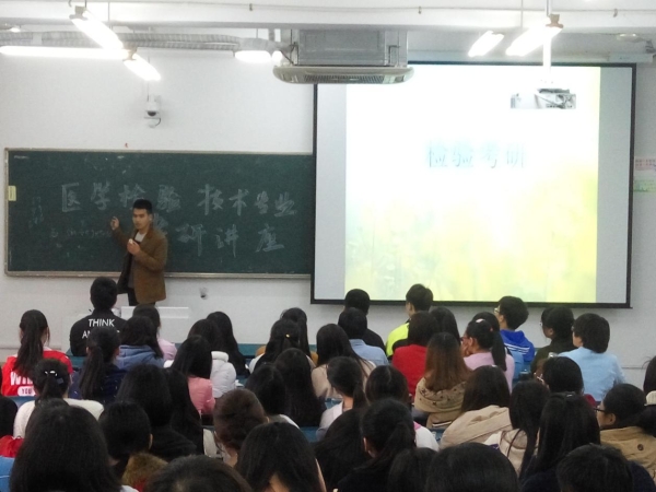 为帮助医学检验技术专业员工掌握考研最新信息,及时调整备考方向,4月9日,影检学院特邀临床检验诊断学教研室路勇老师以及今年考取温州医科大学、安徽医科大学、广州中医药大学研究生曹荣、李济民、汪湾为同学们传授考研经验,2014级辅导员骆成以及2014、2015级医学检验技术专业员工聆听了本次讲座。