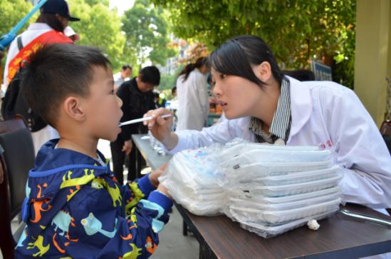 本次义诊活动包括:测量血压、口腔检查、体重测量、视力检查、嗅觉与视觉检查、神经检测等六项内容。准备工作就绪后,在工作人员积极的宣传下,风信子志愿队投入到义诊活动中。血压测量中,志愿者根据测得的血压值为居民提供饮食方面的建议;口腔检查中,志愿者就老人牙齿松动、小孩的蛀牙问题,热心地提醒居民注意保护牙齿;体重、视力及神经检查,帮助居民丰富健康常识。检查结束后,贴心的工作人员还送上了板蓝根、风油精等生活药品,义诊人员认真细致的服务态度,获得了居民的一致好评。