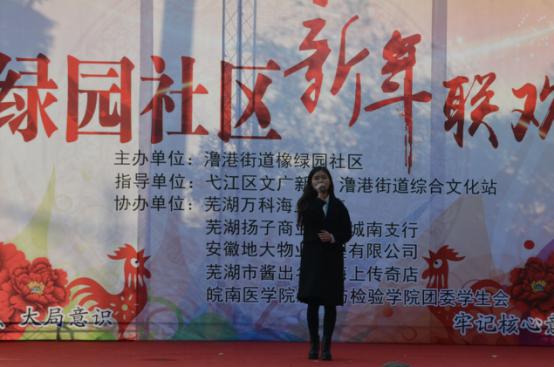 在社区居民一片欢声笑语中,现场洋溢着节日的氛围。影检学院参演节目的同学或歌或舞,赢得阵阵掌声。一曲《极乐净土》用活力十足的舞蹈迎接新年;《大鱼》的空灵歌声似乎将美好古老的故事娓娓道来;《告白气球》熟悉的曲调让现场观众轻轻跟唱,气氛十分热烈。