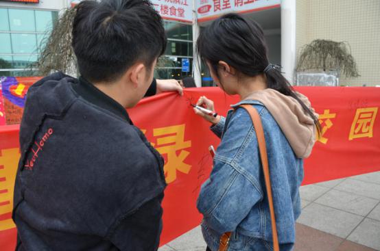 本次活动分为清洁校园和横幅签名两个部分。上午八时,志愿者们在进行庄重的宣誓后,携带工具打扫1号教学楼和逸夫楼。活动中,志愿者对每一教室中的黑板桌椅进行了细致地清洁,尽力为同学们营造一个更加舒适的学习环境。清洁校园结束后,志愿者们在老食堂门口开展了横幅签名活动,过往行人纷纷驻足,在弘扬雷锋精神的活动中增添自己的力量。