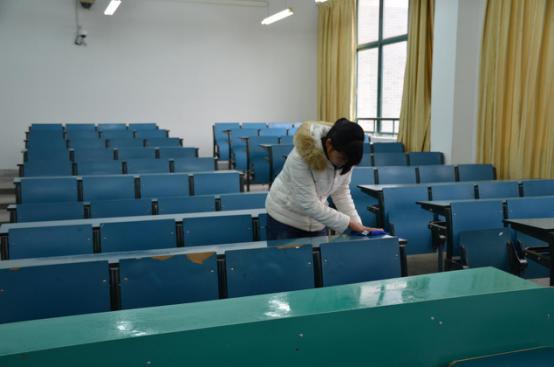 (擦拭桌椅)