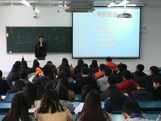 讲座上,胡老师通过翔实的案例分析研究生的意义和就业前景,重新解读了考研两字的含义,讲解了考研的备考重点,明确当前考研形势,鼓励同学们确定目标,努力学习,并就如何择校选专业、如何准备研究生各阶段考试、如何安排学习时间提出相关建议。李雪峰、孙涛两位同学则通过自身备考经历分享他们的考研心得以及复试技巧,就考研政治、英语、数学以及专业课的复习传授宝贵经验,讲座最后,两位同学耐心回答大家提出的问题,并寄语同学们“只有坚持别人无法坚持的坚持,方能成就别人无法成就的成就”。