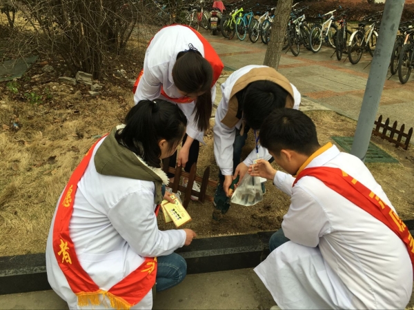 在活动开始之前,“风信子”团队的成员们进行了志愿者宣誓,响亮的宣誓声彰显了志愿者们做好此次活动的信心,也表达了自愿尽己所能,帮助他人,服务社会的意愿。本次活动主要分为三个部分:横幅签名、草坪维护、自行车整理。志愿者们分为6个小组有条不紊开始行动,他们通过横幅签名和粘贴宣传标语的方式,呼吁大家积极参与到共建美丽皖医的行动中来。此外,他们还摆齐乱停乱放的自行车,用栅栏围起被踩伤的草坪。虽然中途天空飘起了细雨,但是大家的热情丝毫未减,纷纷用自己的双手为建设优美整洁的校园环境贡献一份绵薄之力。