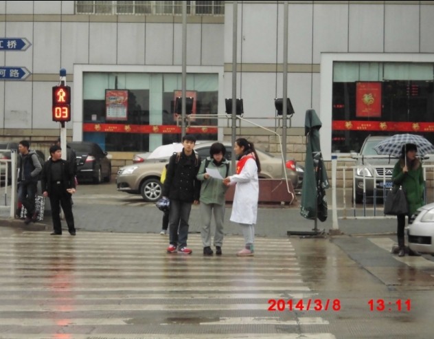 3月8日,在有关交通部门的大力支持,志愿者服务队在市中心九华中路开展以“为爱护航”为主题的交通知识义务宣传活动。活动过程中,服务队分工明确、秩序井然,对部分行人及非机动车辆的违规行为进行及时制止,并不失时机地向行人讲解交通安全知识并发放交通知识宣传单,充分发挥高校志愿者关心公共安全、积极服务社会的精神。