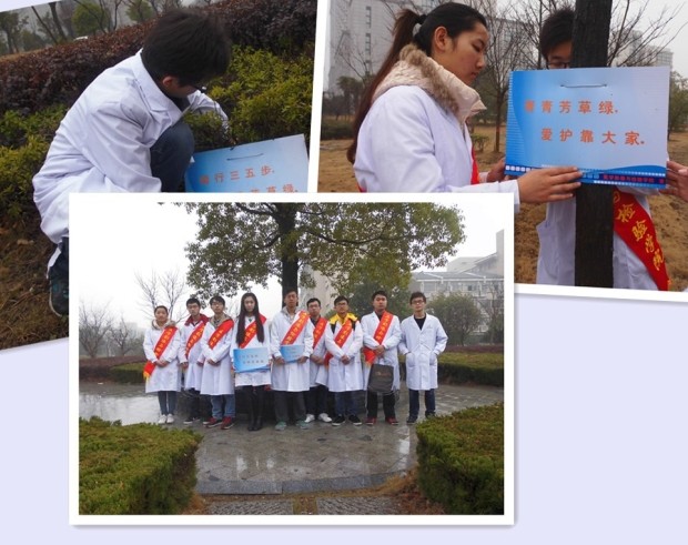 3月12日,学院志愿者们在校园内开展植树节特色活动,对校园内被损坏或者缺失的环保标语相继进行了调整和更换,温馨的提示牌树立在茵茵绿草中,提醒来往同学爱护校园的一草一木。接着,志愿者们分小组为校园内的树木挂上崭新的树牌,尽管春雨淅沥,乍暖还寒,却挡不住志愿者们爱护花草树木的热诚,换牌行动遍布整个校园,也将无私奉献的雷锋精神在绿色校园中不断传递。