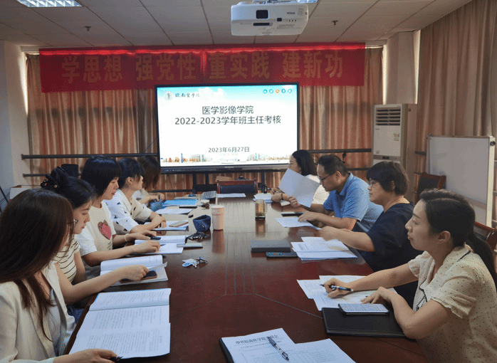 述职评议会上,王爱侠带领学习学校《关于开展2022-2023学年班主任考核工作的通知》《皖南医学院班主任工作管理规定(试行)》等文件精神,指出本次考核的目的、意义,要求班主任对过去一学年的工作情况进行总结,通过交流经验,相互学习,促进今后班主任工作更好的开展。接着,各专业班主任们围绕自身实际工作,从理想信念教育、班团建设、学风建设、贴近员工、学业辅导、创新创业教育、安全教育等方面工作逐一进行了述职交流。