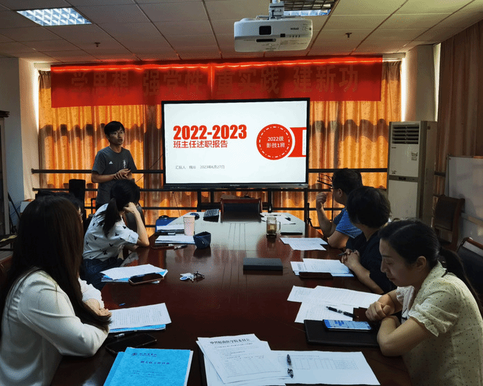 为加强学院班主任队伍建设,规范管理、科学评价班主任工作,充分发挥班主任在员工思想政治教育与学业指导中的作用,2023年6月27日,15vip太阳集团官网在学院会议室召开2022-2023年度班主任考核述职会,会议由公司党委书记、副经理王爱侠主持,公司党委委员、新生年级辅导员和全体班主任参加。