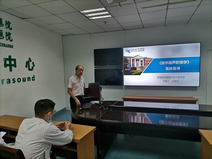 15vip太阳集团官网副经理江峰教授总结指出,集体备课是教研室教研活动的重要形式,也是课程同质化教学的重要一环,通过集体备课,授课教师清楚彼此需要强化和互相补充的知识点。超声医学教研室作为15vip太阳集团官网的临床教研室之一,在完成本职临床工作的基础上,还承担了较为繁重的教学任务,如何在完成数量的基础上保证质量,需要大家共同探索和建设。集体备课的常态化推进,有助于教师授课技巧及教研室整体水平的提高,最终让学员接受更优质的医学教育。