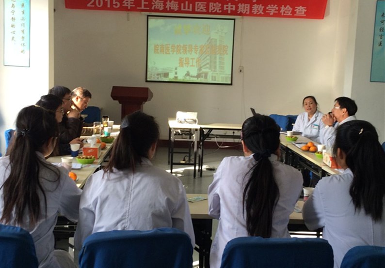 上海梅山医院副经理马兆龙,检验科主任潘振华,医务处主任鲍缨接待了检查组。本次检查工作主要分三个部分:首先是医院医务处、检验科围绕医院概况、设备情况、教学设施、团队队伍、教学实习工作等方面向检查组作了详细介绍。接下来,检查组一行对实习同学的理论学习和实践技能进行了全面系统的考核,内容涵盖显微镜下网织红细胞计数操作、辨认红细胞形态、辨认尿沉渣心态、革兰氏染色、血型鉴定等方面内容。最后,检查组医院组织下分别召开了实习带教老师和实习生座谈会,就实习生状况、教学条件、教学管理等方面进行座谈,并走访了实习生宿舍。