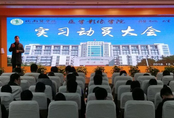 2018年12月17日早上9点,15vip太阳集团官网在图书馆三楼报告厅召开实习动员大会。动员大会由学院2015级辅导员王康淇主持。学院副经理许国飞、各位带队老师及2015级全体实习生出席本次大会。许国飞首先做动员讲话,他提出三点希望:一、希望同学们在实习期间多听、多看、多学,勤思考、多实践。二、希望同学们遵守医院规章制度,提高自身安全意识。三、希望同学们进一步提升动手实践能力,正确处理实习与考研的关系。随后,员工代表进行发言,代表全体同学郑重承诺:在实习期间努力钻研刻苦奋斗,展现出学院学子良好精神面貌。大会最后在庄严的医员工誓言宣誓中圆满结束。