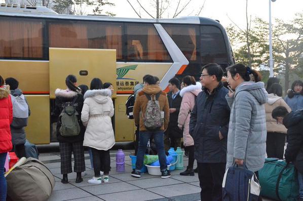 2018年12月18日清晨5点,实习生离校工作正式开始。学院团委安排员工会同学帮助实习生搬运行李。学院领导、老师也亲临现场指导,叮嘱司机和实习生相关注意事项。满怀着对实习生活的期盼以及对母校恩师的不舍,实习生们陆续踏上行程。上午9点半,最后一班大巴驶出校园,2015级实习生全部完成离校。在学院的统一安排指导下,2015级实习生离校下点及2014级实习生返校工作于当日圆满完成。