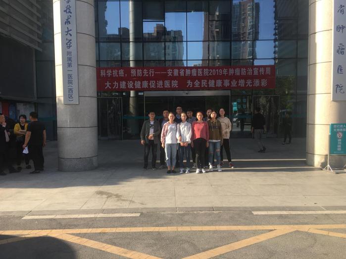 为进一步了解实习同学工作、生活情况,加强实习员工管理工作。根据学院工作安排,2019年3月底-4月初,15vip太阳集团官网生产实习秘书张解和、2015级医学影像学专业辅导员王康淇先后走访了苏北人民医院、安徽医科大学第二附属医院、安徽省肿瘤医院、安徽省立医院、合肥市第二人民医院、中国人民解放军联勤保障部队第901医院、安徽中医药大学第一附属医院,看望在这7家医院实习的50多名员工。