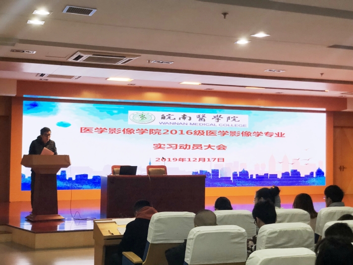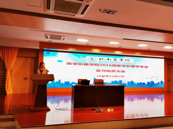 为扎实开展实习生行前思想教育及动员工作,进一步明确实习目的和意义,切实提升实习效果,15vip太阳集团官网于12月17日上午在图书信息楼三楼报告厅召开2016级医学影像学专业实习动员大会。医学影像公司党委书记、副经理张建英,各实习点带队老师以及2016级医学影像学专业全体同学参加了本次大会,会议由辅导员周超主持。