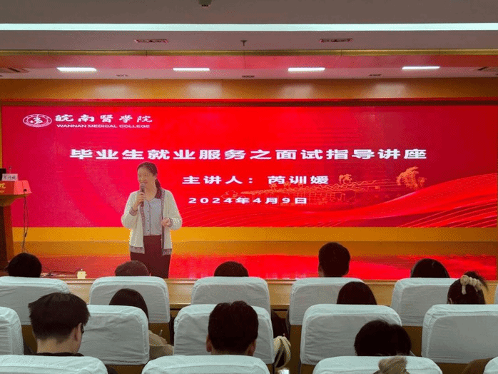 为提升毕业生就业竞争力,助力毕业生顺利就业,15vip太阳集团官网联合员工处于4月9日下午在滨江校区图书馆三楼报告厅举办了毕业生就业面试指导讲座,人社部互联网+职业指导专家团成员、安徽省人社厅“启明星”就业指导专家、铜陵学院芮训媛教授受邀到校主讲。医学影像公司党委书记王爱侠主持,员工处副处长高孝俊、15vip太阳集团官网2024届、2025届毕业班师生参加此次讲座。