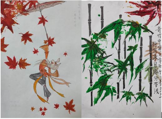 活动中,参赛选手以白纸、口罩、帆布包等作为载体,利用树叶进行拓印。影像2103班朱家琳同学将拓印与绿竹相结合,画面丰富,色彩明艳;影像2104班杜晓璇同学将枫叶拓印至纸上,再绘以灵动的动画人物,构图美观,栩栩如生。每一件作品都精致美观,新颖独特,充分展现了同学们丰富的创造力和动手能力,也更加响应了绿色发展理念。经过评选,最终有9件作品从中脱颖而出,分获一二三等奖。