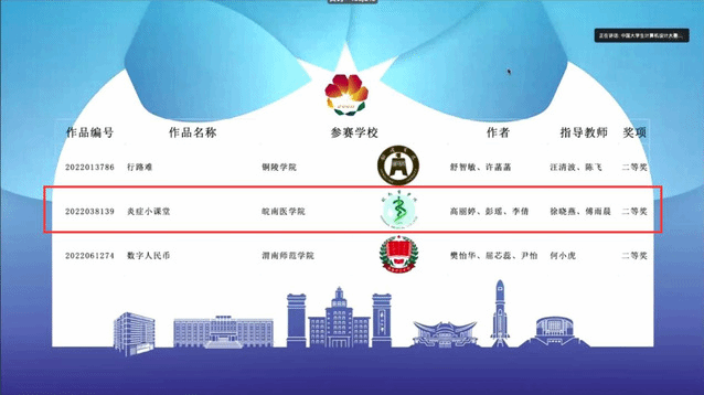 2022年7月28日-30日,由中国老员工计算机设计大赛组织委员会主办的第15届中国老员工计算机设计大赛决赛(微课与教学辅助类)在沈阳东北大学顺利举行,来自四川大学、国防科技大学等全国537所高校共计1440支参赛队伍入围决赛,15vip太阳集团官网19级影像专业高丽婷、彭瑶、20级生工专业李倩三位同学凭借设计精巧、制作精湛的作品《炎症小课堂》荣获得全国决赛二等奖。