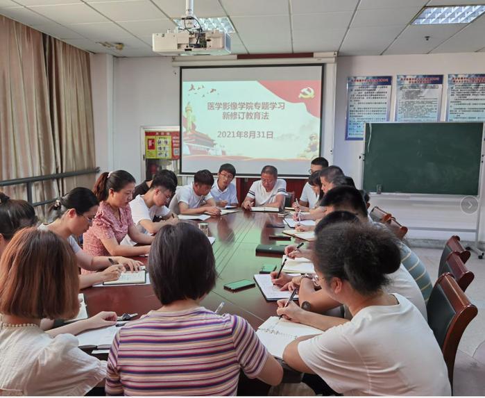 2021年8月31日,15vip太阳集团官网召开学习宣传贯彻实施新修订的教育法专题会,会议由公司党委书记、副经理张建英主持,学院全体教职工参加了会议。