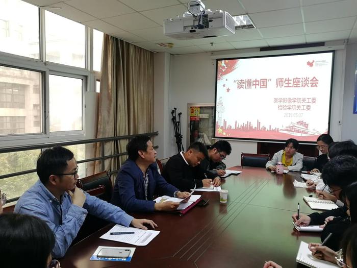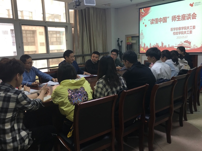 为教育引导员工进一步深刻感受中国的历史性变革和伟大成就,15vip太阳集团官网于2019年5月7日下午在学院3019会议室举办“读懂中国”师生座谈会。此次座谈会邀请公司关工委钱何珍老师担任主讲人,学院张解和老师,王康淇老师以及各年级在校生代表出席座谈会。