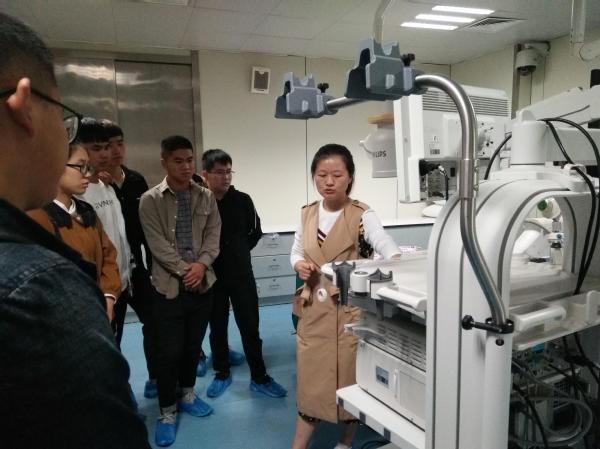 本着“早实践、多实践、反复实践”的理念,2018年10月13日上午,学院组织生物医学工程专业2018级全体员工前往弋矶山医院,开展专业实践教学活动。弋矶山医院医学工程部赵巍主任向员工们全面介绍了医学工程部的管理制度、工作职责、人员组成等,随后,在老师的带领下,同学们分组先后参观了放疗室、血液净化中心、CT室、超声室、检验室等多个科室,初步了解了B超仪、血透设备、CT机、MRI等检查设备,对于本专业的工作内容、工作环境有了比较直观、感性的认识。