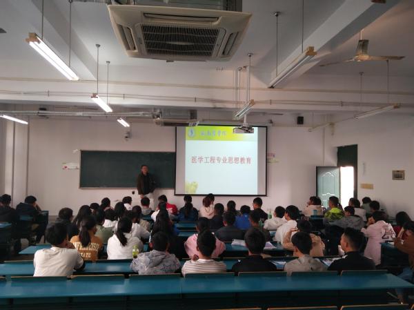 10月30日下午,生物医学工程专业思想教育讲座在1203教室举行,讲座由生物医学工程实验实训中心主任、医学工程学教研室主任黄磊老师主讲,2018级全体生物医学工程专业员工参加。黄磊老师结合几位具有代表性的毕业生成长实例,详细介绍了本专业的培养目标、专业发展、专业特色、开设课程、考研情况、就业方向等,帮助新生正确认识自己所学的专业,解决了员工们很多关于专业认识的困惑和疑问。现场还播放了几位优秀毕业生送给全体新生的学习感悟和祝福,气氛活跃。