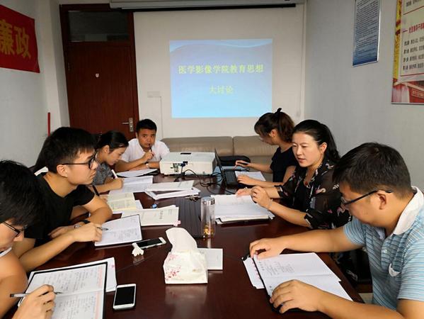 2018年9月14日上午,医学影像公司在公司会议室召开2018年教育思想大讨论动员部署会。会议由公司党委书记、副经理张建英主持,学院党委副书记、副经理许国飞及全体支部书记参加会议。
