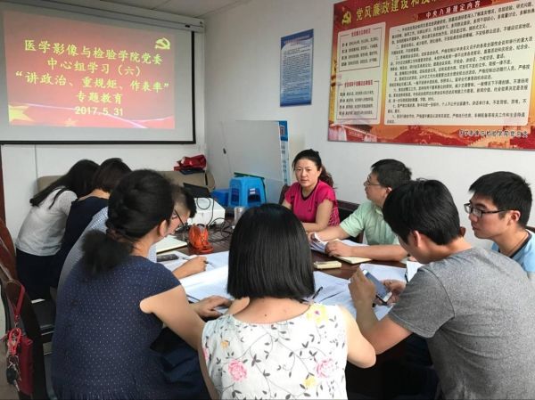 会上,张建英传达了《中共皖南医学院委员会关于推进“两学一做”学习教育常态化制度化的实施意见》和《关于开展“讲政治、重规矩、作表率”专题教育的方案》文件精神,要求全体党员深入系统学习习近平总书记视察安徽重要讲话精神,认真开展学习研讨,加强理论学习的自觉性和主动性,将理论学习转化为实际工作动力,切实做好教学科研和员工管理服务工作。