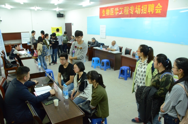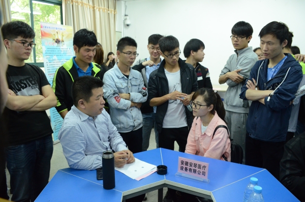 本次招聘会共有18家用人单位进场招聘,用人单位来自合肥、南京、上海等多地市,为毕业生提供了售后工程师、市场代表、销售助理等50余个就业职位。各招聘单位通过企业宣讲、现场互动等多种形式对公司的企业概况、发展前景、岗位需求、薪资待遇等方面详细的介绍。毕业生们踊跃参加并对有意向单位进行深入交流,详细了解用人单位的规模和发展状况,同时结合自身实际合理定位就业单位。生工专业毕业生凭借过硬的专业素养和优良的综合素质,赢得了招聘企业青睐,企业纷纷表示要加强与公司合作建立长期合作关系。2014级员工也纷纷来到现场,为今后的职业生涯提前做准备。