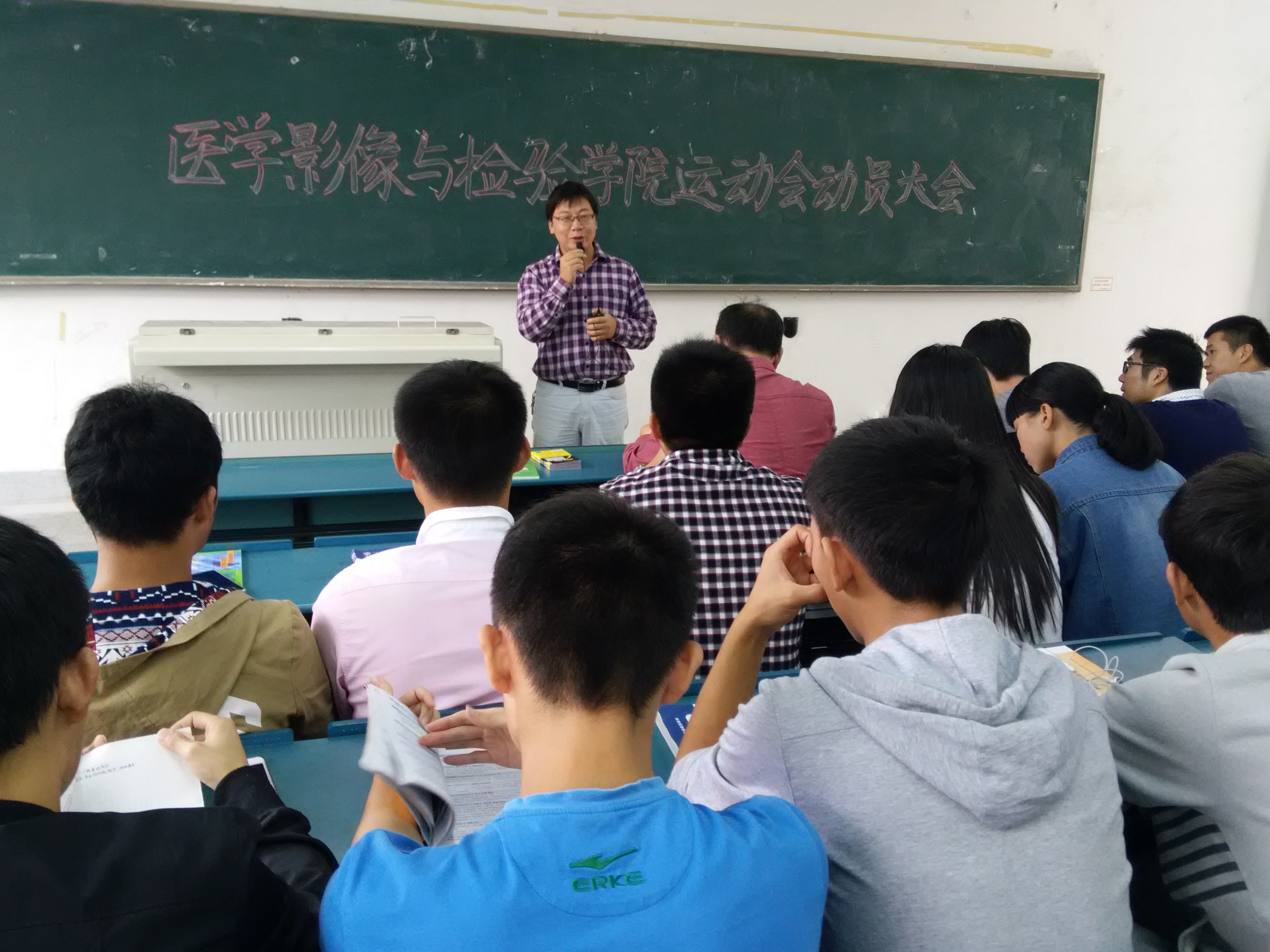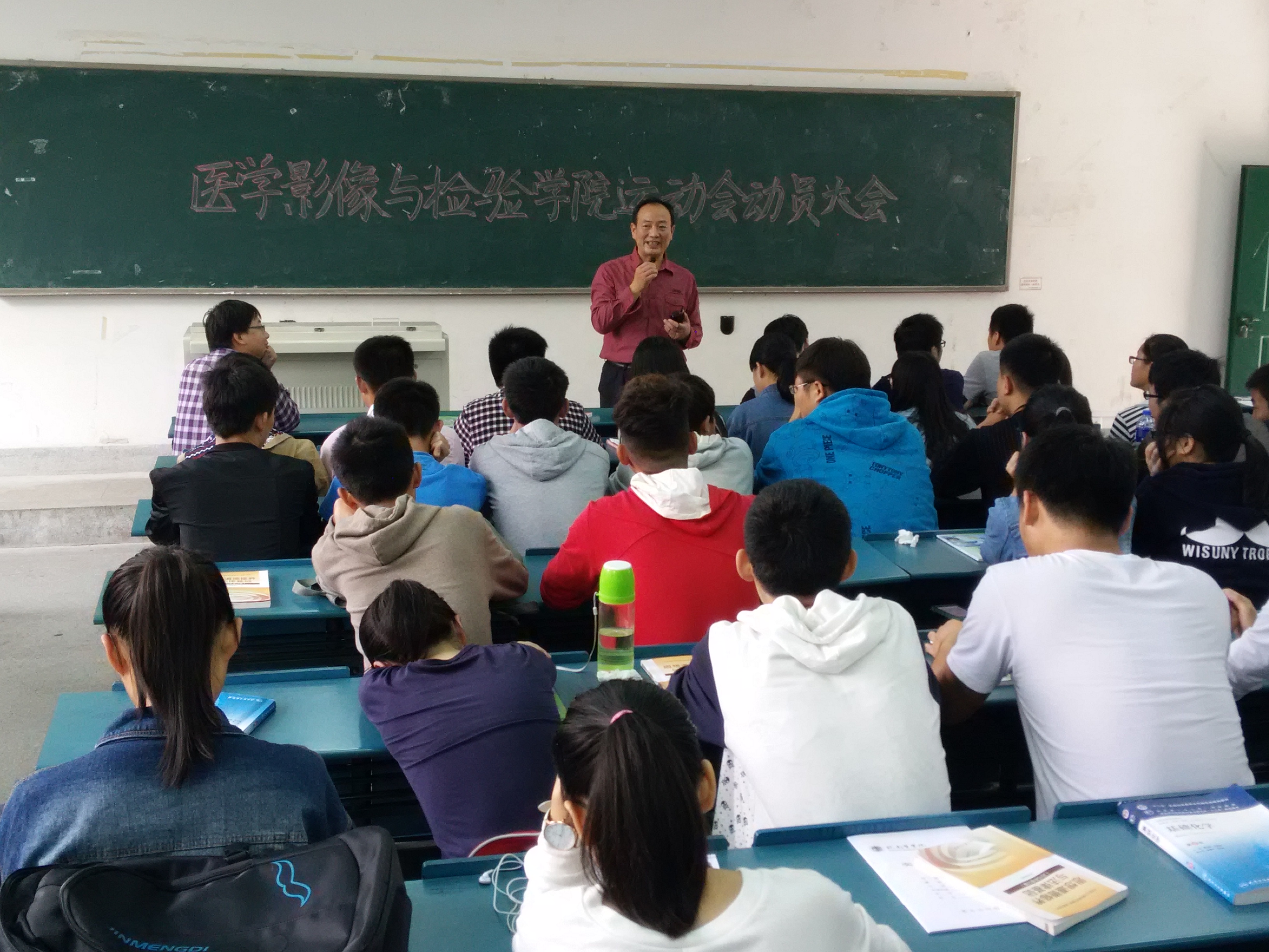 为更好的备战校第36届运动会,鼓舞运动员赛前志气,医学影像与检验学院于2015年10月22日在东教104举行运动会动员大会。此次动员大会由2011级辅导员孙开慧主持,副经理许国飞,2014级辅导员骆成,2015级辅导员王康淇、周超出席此次会议。