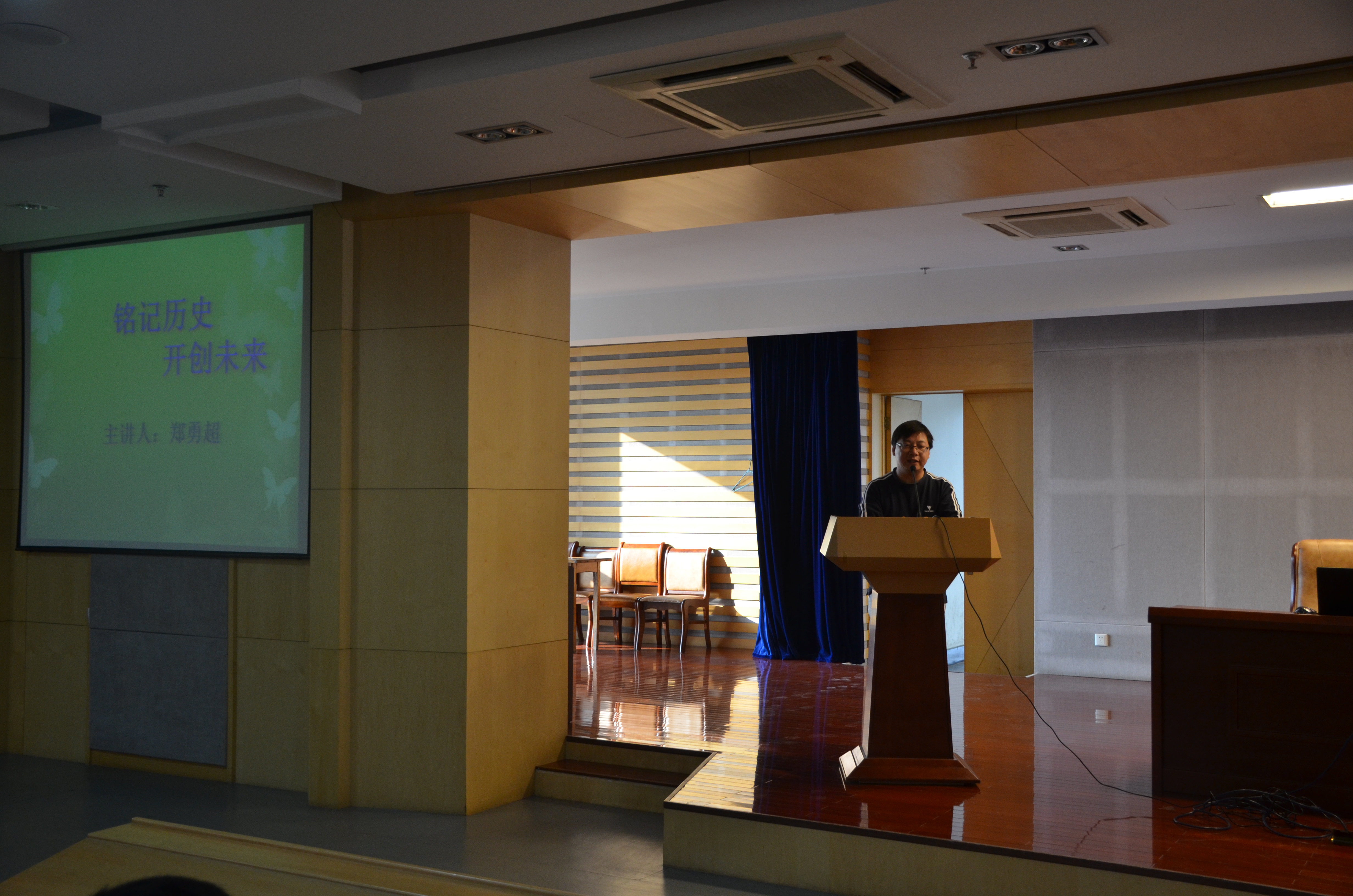 铭记历史,缅怀先烈,珍爱和平,开创未来。为大力弘扬民族精神,更好地激发员工们的爱国热情,在抗战胜利70周年之际,医学影像与检验学院于2015年10月23日在图书馆三楼报告厅举办了“铭记历史,开创未来”主题的讲座。此次讲座校关工委郑勇超老师主讲,学院副经理许国飞主持,院关工委秘书陶香林,2015级辅导员周超、王康淇及2015级新生共同聆听了此次讲座。