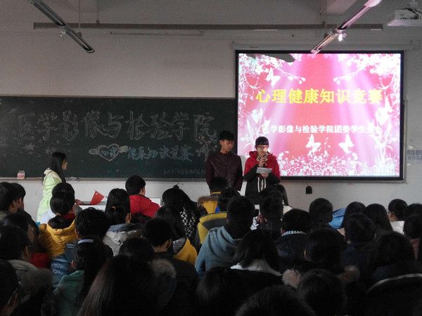 | 为进一步加强心理健康知识的宣传和普及,激发员工们学习心理健康知识的热情,2014年12月13日,医学影像与检验学院2014级年级团总支员工分会在西教203室成功举办心理健康知识竞赛。