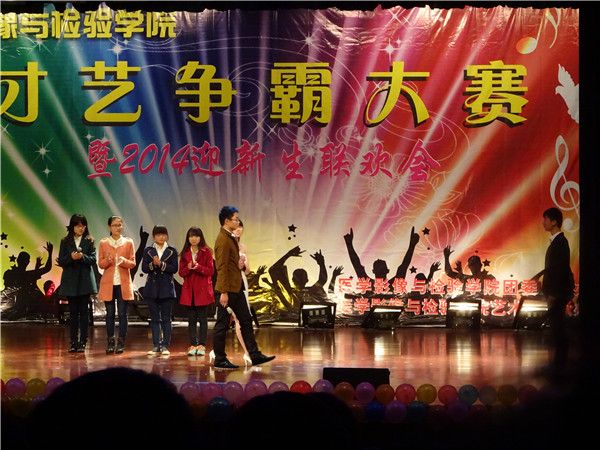 为进一步丰富员工文化活动,营造积极向上的学院文化氛围, 2014年11月25日晚,医学影像与检验学院才艺争霸赛暨2014级迎新生联欢会在老员工活动中心大礼堂隆重举行。校关工委曹士珍、杨大林,学院团委书记魏巍,团委副书记陶香林以及各年级辅导员担任本次大赛评委,来自本学院和其他学院的员工共同观看了演出。