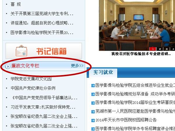 廉政文化是社会主义先进文化的重要组成部分,是党风廉政建设的重要方面。学院在网站首页开辟“廉政文化专栏”,转载党风廉政建设相关制度文件、重要领导人的讲话,从深入学习理论着手,领悟廉政文化内涵,为开展党风廉政建设夯实理论基础。
